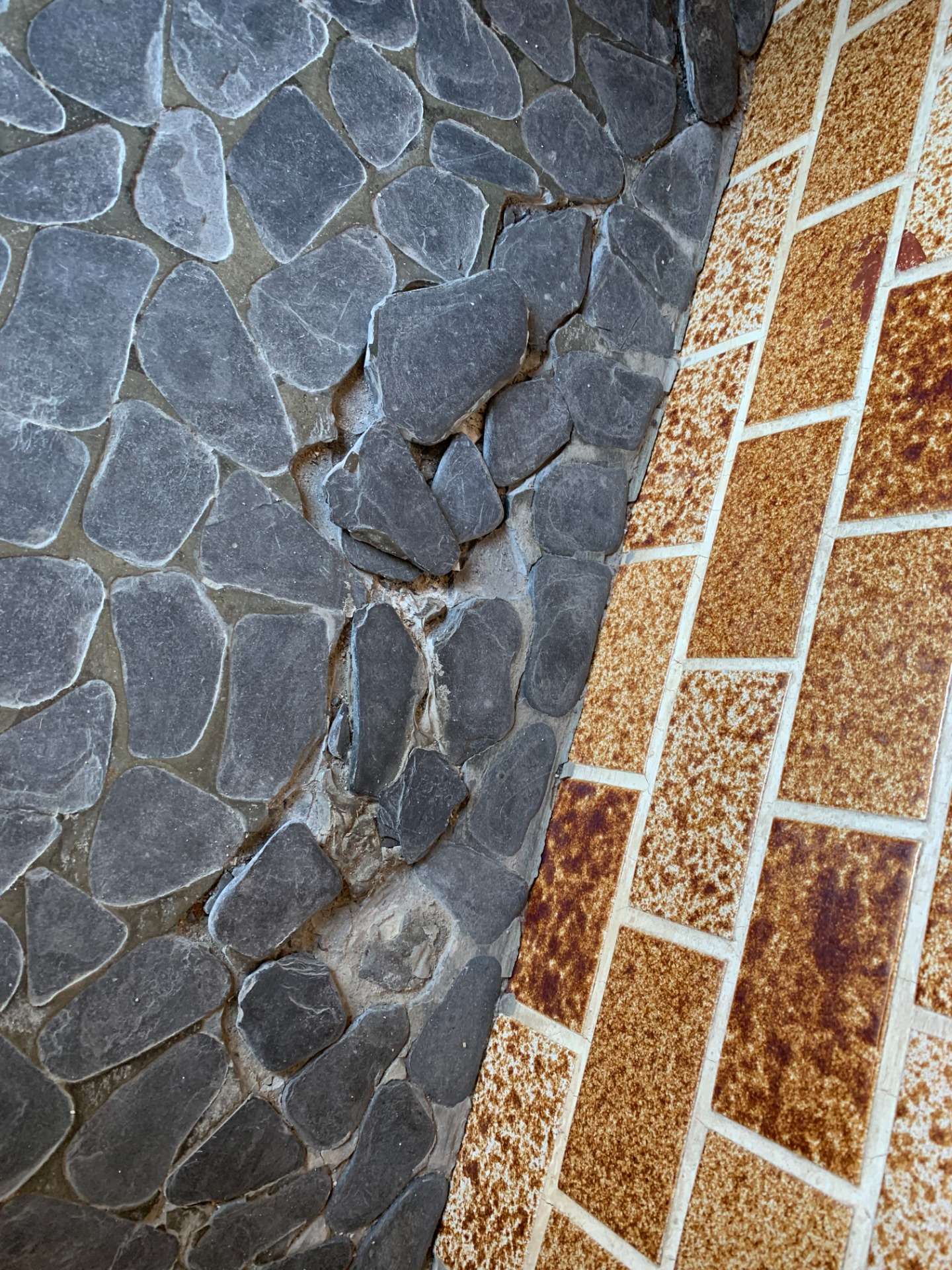 今回は、内玄関の石タイルが外れているので部分的に補修してほしいというご依頼がありました。