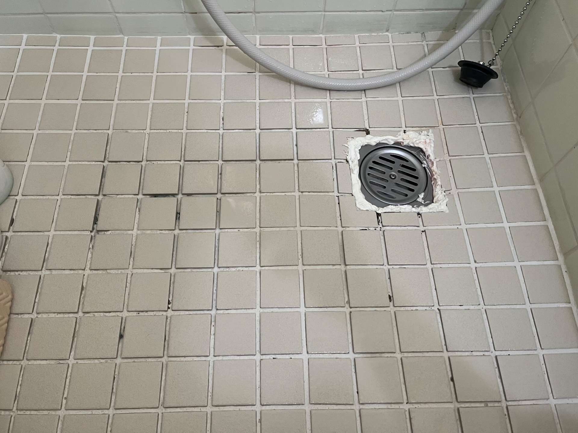 今回は、お風呂の排水口の修理と目地を埋めてほしいというご依頼がありました。