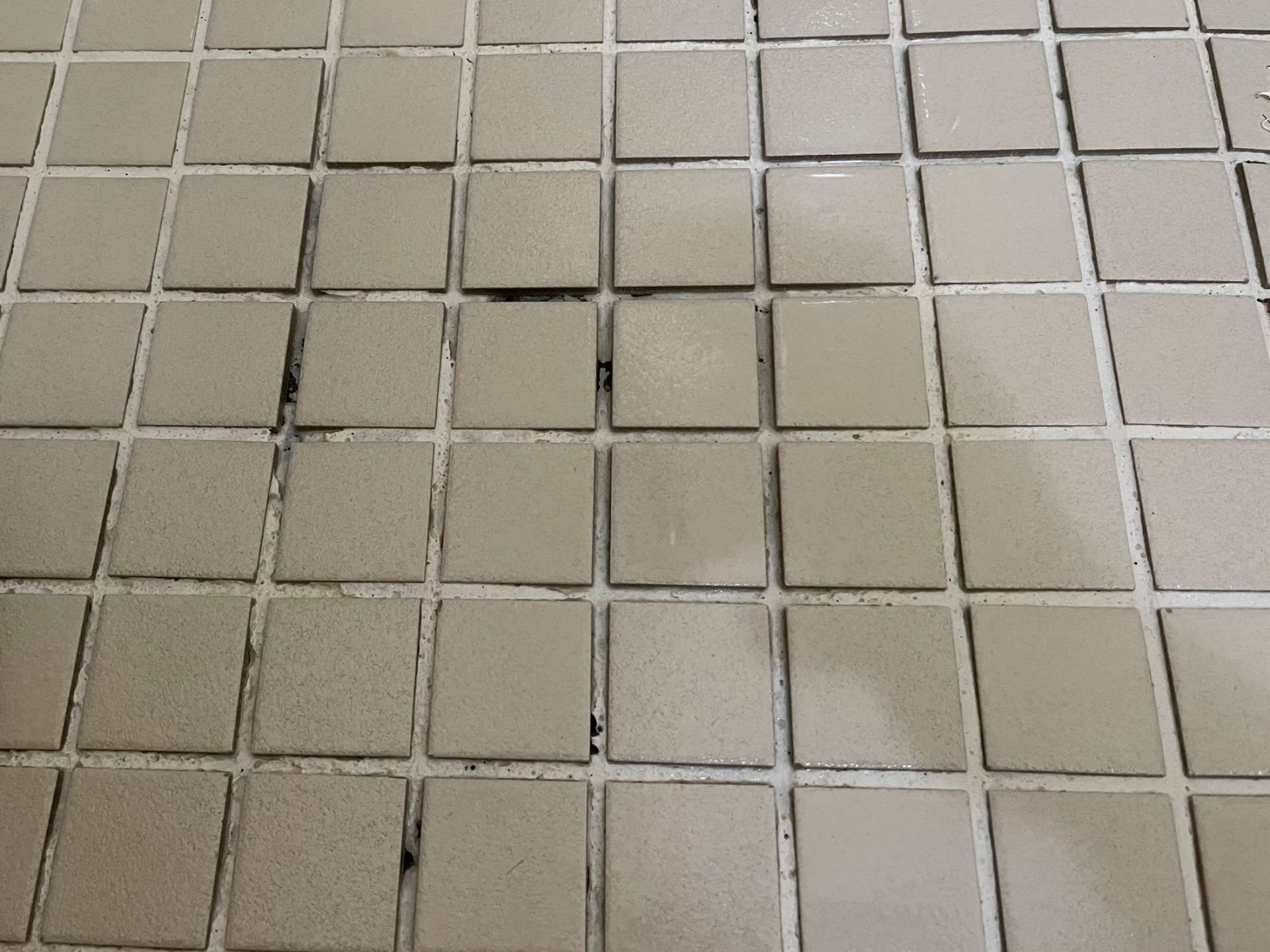 排水口部は段差ができていましたので新しいワントラップへの交換をおすすめしまして、古いワントラップを取外し交換させていただきました。目地はどうしても減ってきますので定期的に修繕が必要なところになってきます。またコーキング部分も劣化しますので再コーキングが必要になります。特にシャワーが当たる部分が減っていましたので、その部分を中心に目地の補修を行いました。