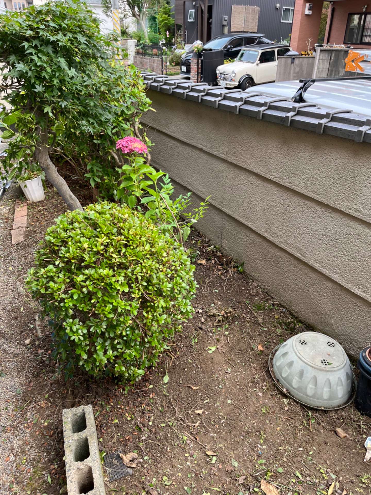 施工時間としましては、約5時間でさせていただき、剪定にはバリカンや鋏を使い、草抜きには、ねじり鎌やモンブランの草取り道具を使い分けて生い茂っていた草木がスッキリきれいになりました。