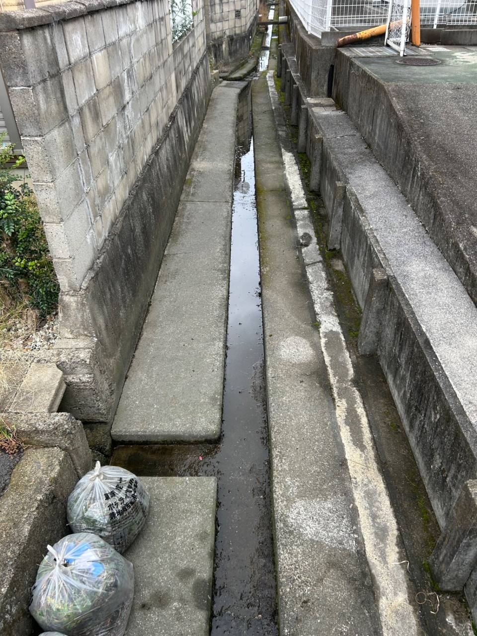 溝掃除と溝周りの除草作業のご依頼がありました。
